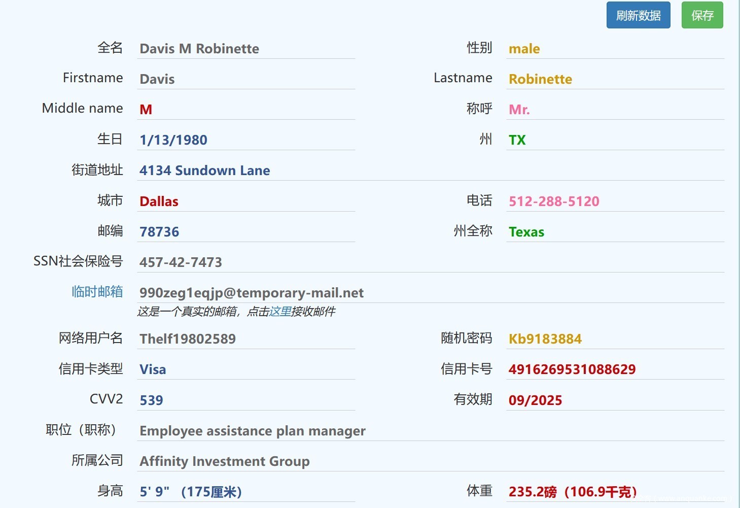 )生成美国人虚拟信息,州全称也需和IP归属的州名称一致。