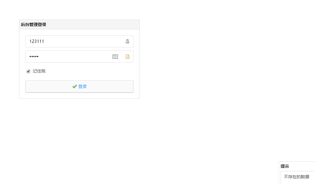 随便输入一个账号和密码,提示数据不存在: