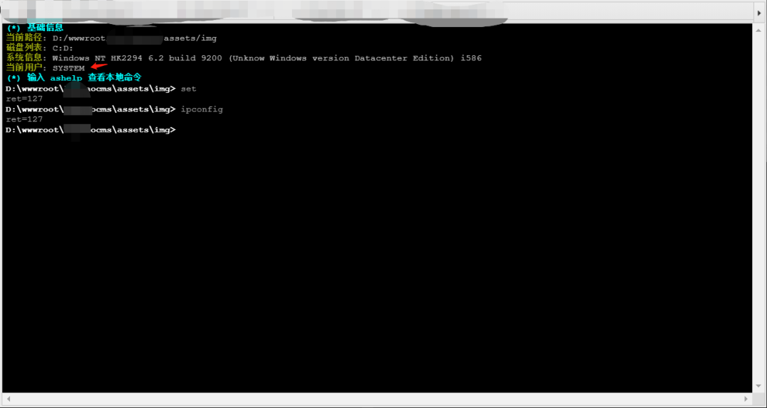 发现是System权限,但是执行系统命令的时候发现执行不了。再一次火大: