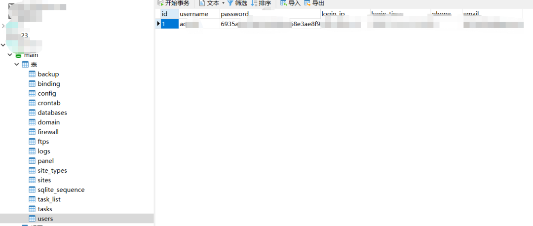 宝塔数据库是用的sqlite3,我们下载下来后直接用navicat打开即可: