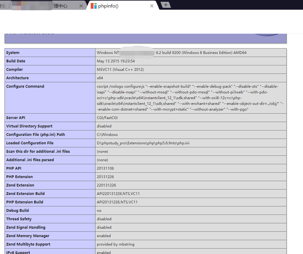 由于是Windows系统,利用Windowcom组件绕过限制需要满足php5.4。