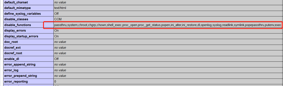 PHP版本5.3.29看下disable_functions是怎么配置的。果然不出所料,禁用了不少函数: