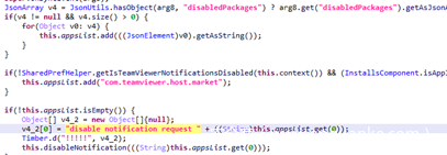 只有Ping一种形式接收指令disabledPackages,获取包名并关闭该包名对应应用的通知