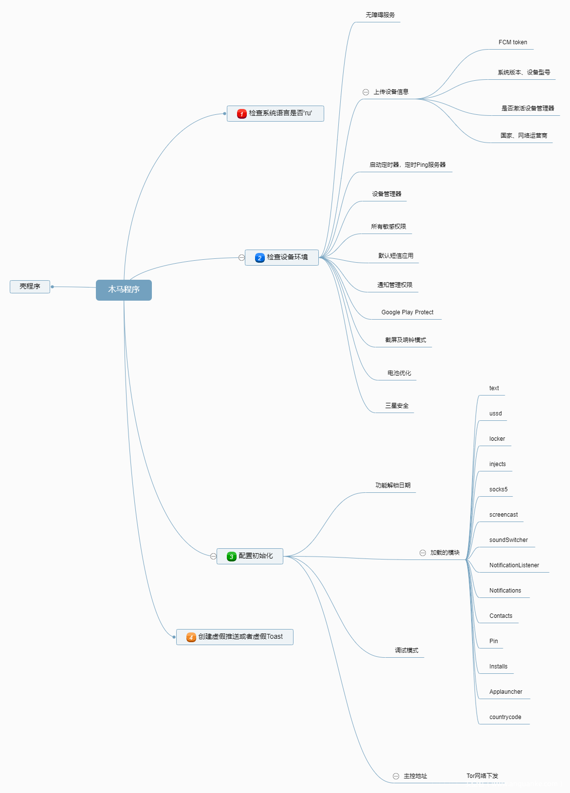 这款恶意软件采用模块化结构设计,每个模块拥有不同的功能,可以有选择性地进行模块初始化。以下是木马中各个功能模块的相关分析