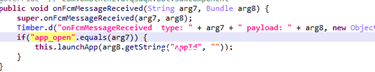 FCM消息获取的指令则只有app_open一个,该指令的功能如Ping中openApp指令一样,安装指定APP