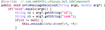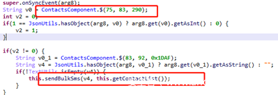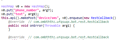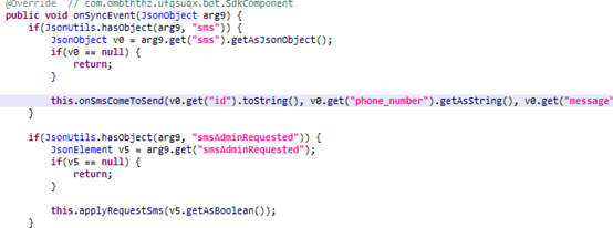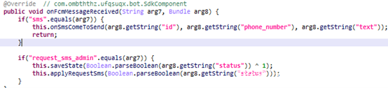 当用户设备收到短信时,该木马获取短信手机号及内容上传到服务器