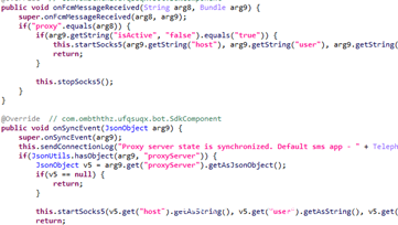 通过FCM消息和Ping获取指令proxy,内容包含设置代理所需的host、user、password、port。