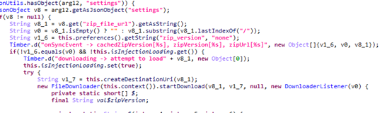 通过Ping和FCM消息获取指令,但是两种方式获取的指令有所不同,Ping获取的指令比较全,主要功能指令是settings和notifications。其中settings指令是下载APP注入所需的图片