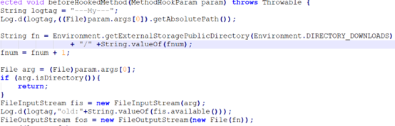 APP运行后释放木马程序,动态载入内存并删除该文件,同时隐藏图标增加隐蔽性。我们通过HOOK删除函数将木马程序复制出来,得到完整代码。