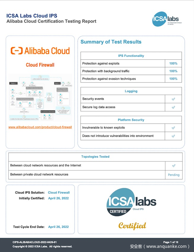 图 阿里云云防火墙通过ICSA Labs测评认证