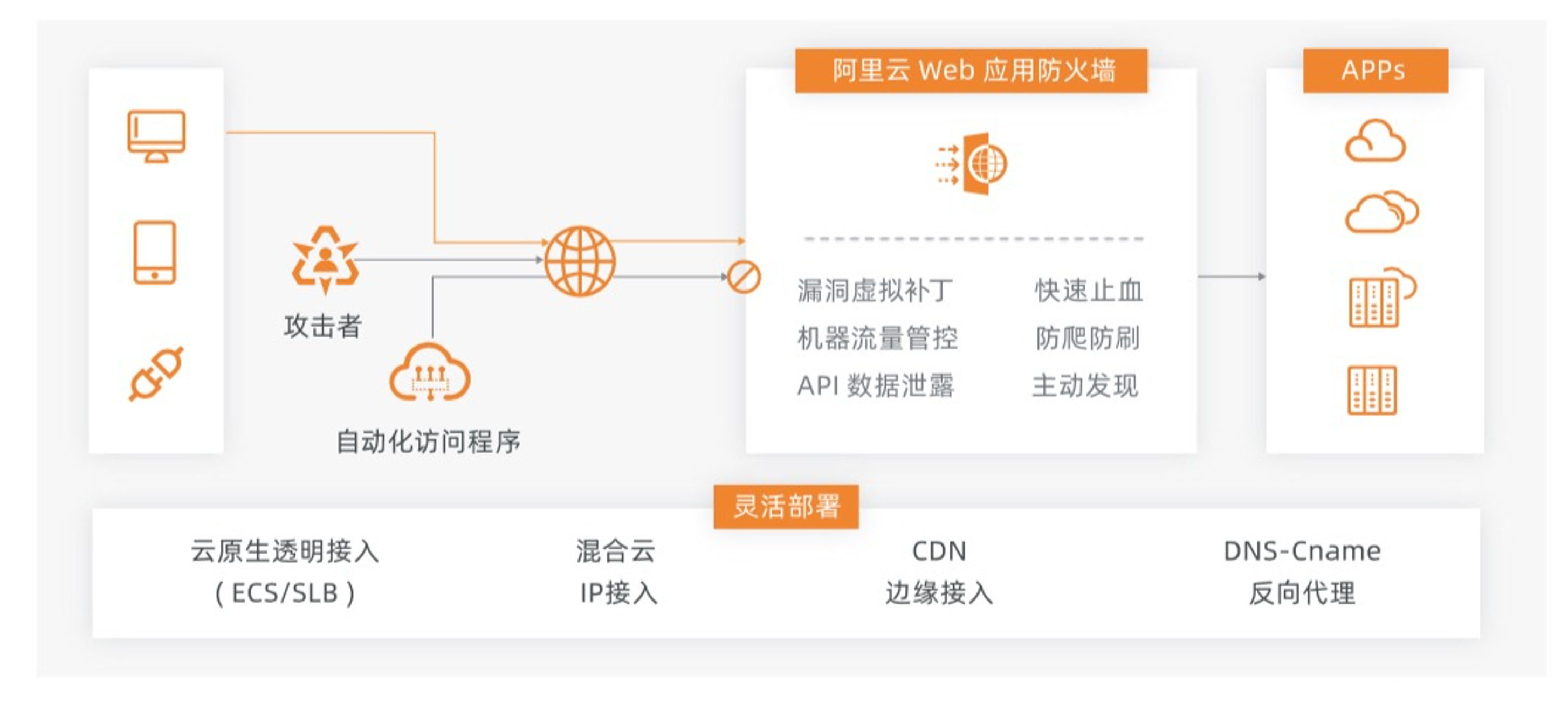 阿里云WAF已经全部满足报告所要求的能力点。灵活部署,支持一站式实时识别、处置混杂在业务访问中的 Web 攻击与 Bot 流量,无论数据接口与资产在公共云、混合云、多云还是 本 地 I D C( 支 持 流 量 不 上 云 )环 境 ,均 能 实 现 统 一 运 维 管 理 。