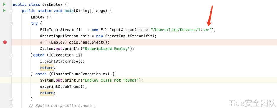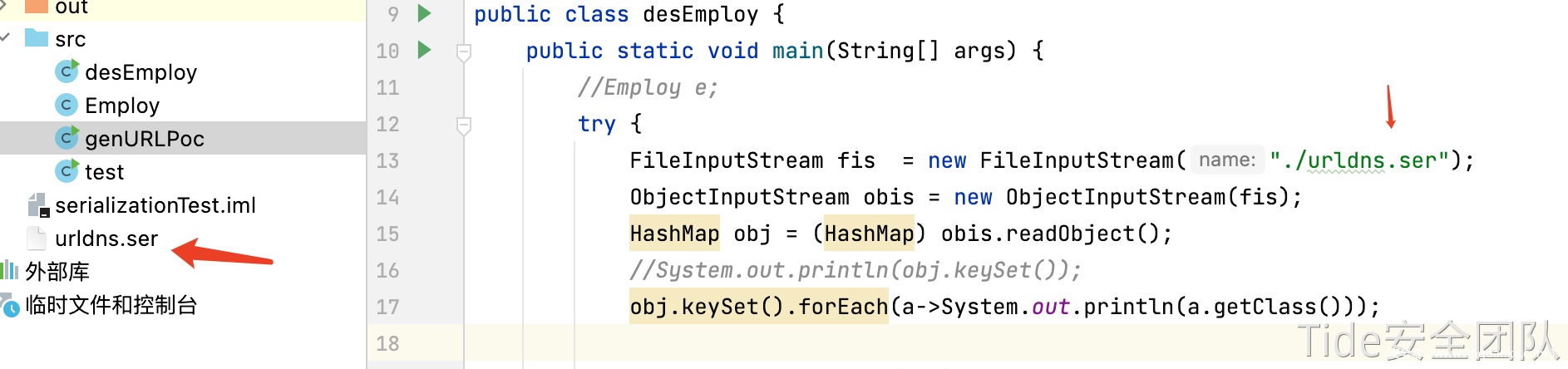 desEmploy.java readObject()反序列化该字节序列,实现dns解析