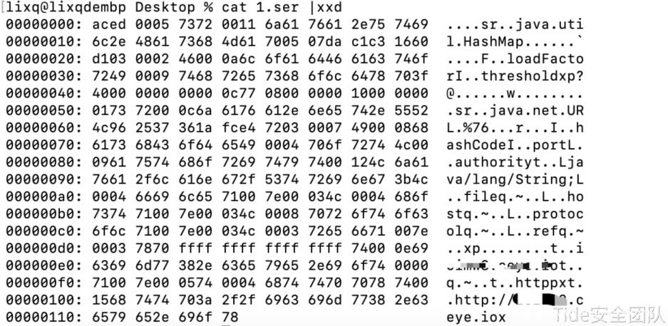 根据输出结果得出:className,这是一个HashMap对象序列化后的字节序列;classDescFlags为3,表示该类重写了readObject方法;classdata,HashMap中key&value是一个URL对象。