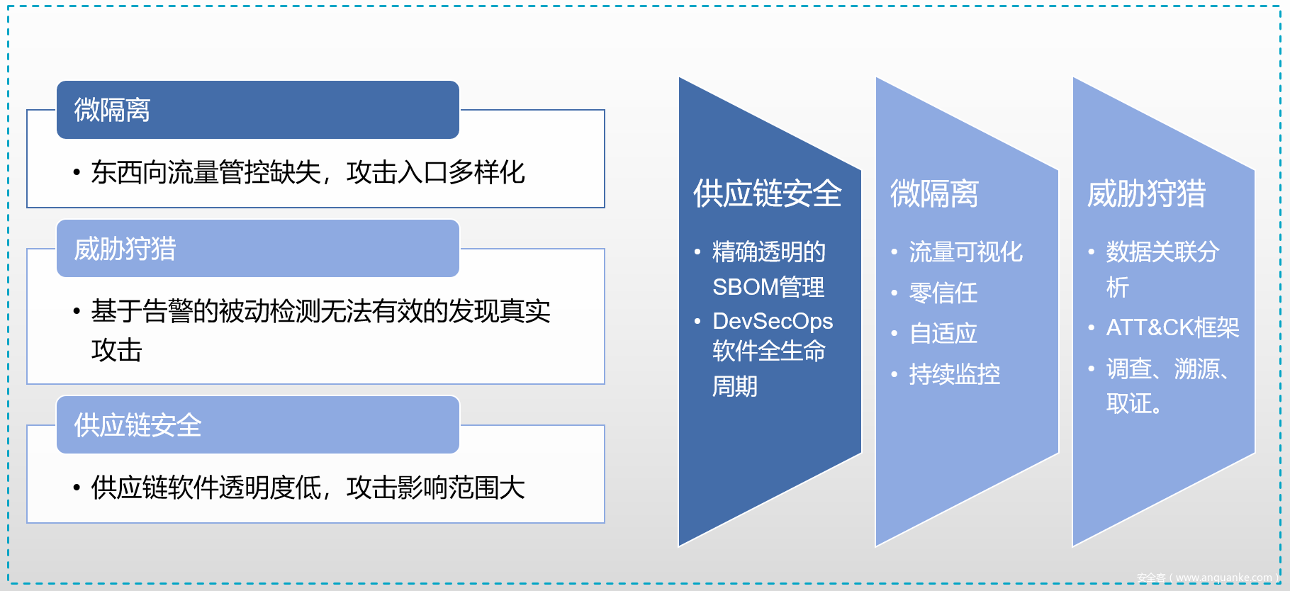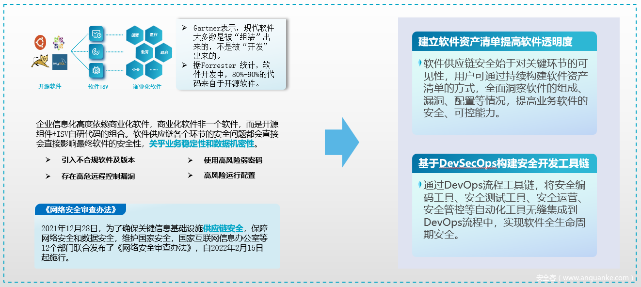 供应链安全:当企业网络安全能力较强时,攻击者往往将注意力转移至供应商,供应商正在成为供应链上最薄弱的环节,加强供应链安全能力成为企业的必然选择。