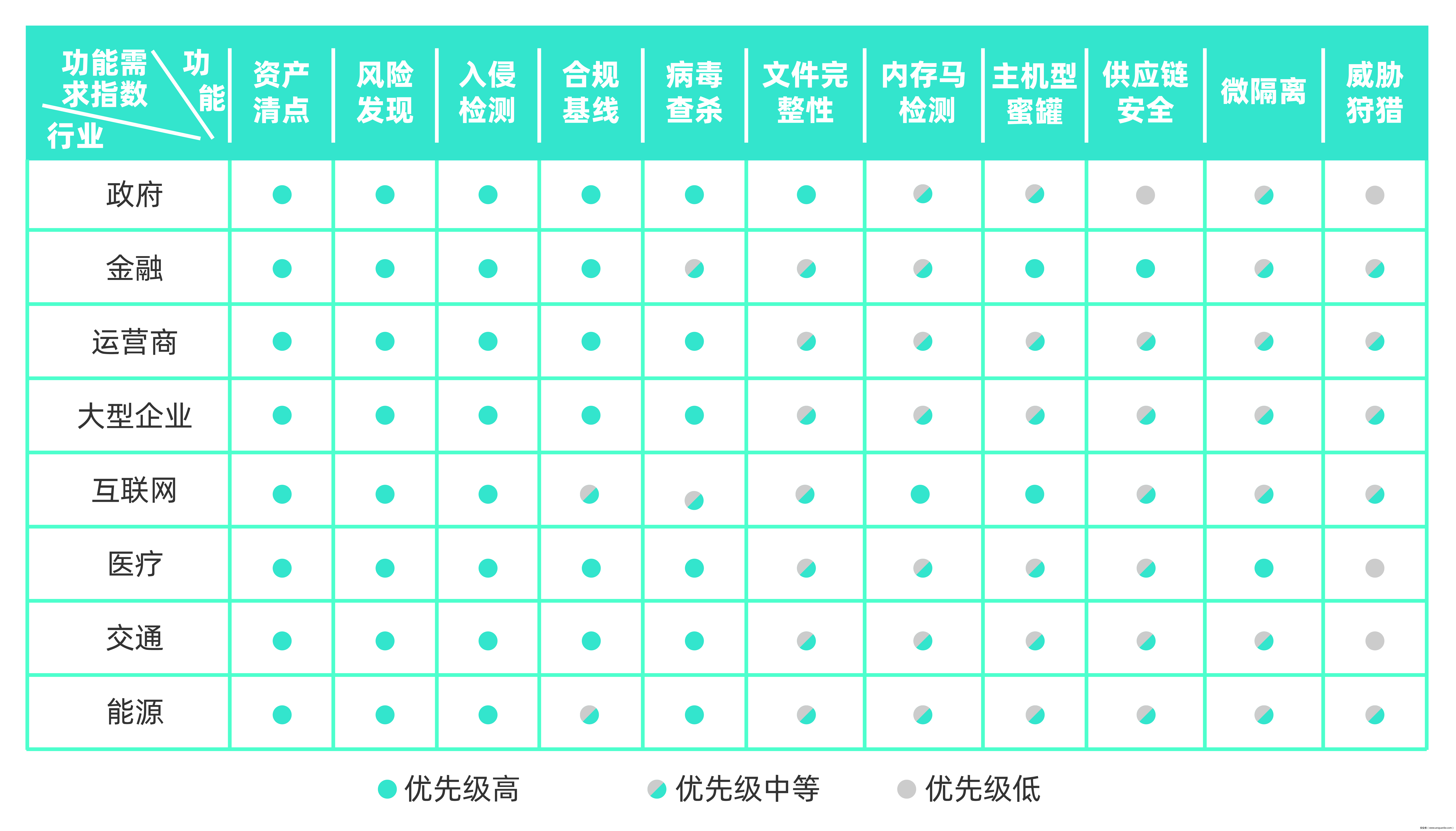 下图展示了不同行业对各主机安全能力的需求优先级。更多详细信息,请扫描上文二维码,下载完整报告。