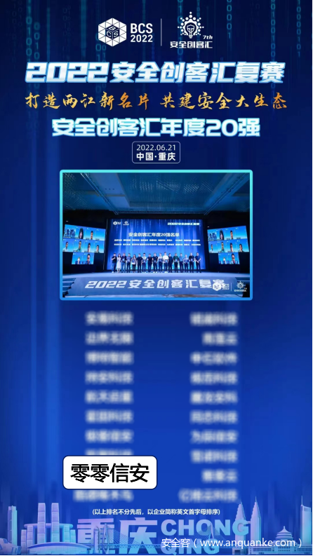 6月21日,由奇安信集团、全国网络信息安全创业投资服务联盟(筹)、奇安投资、中电智慧基金联合主办的第七届网络安全创客汇复赛于重庆两江新区举行。