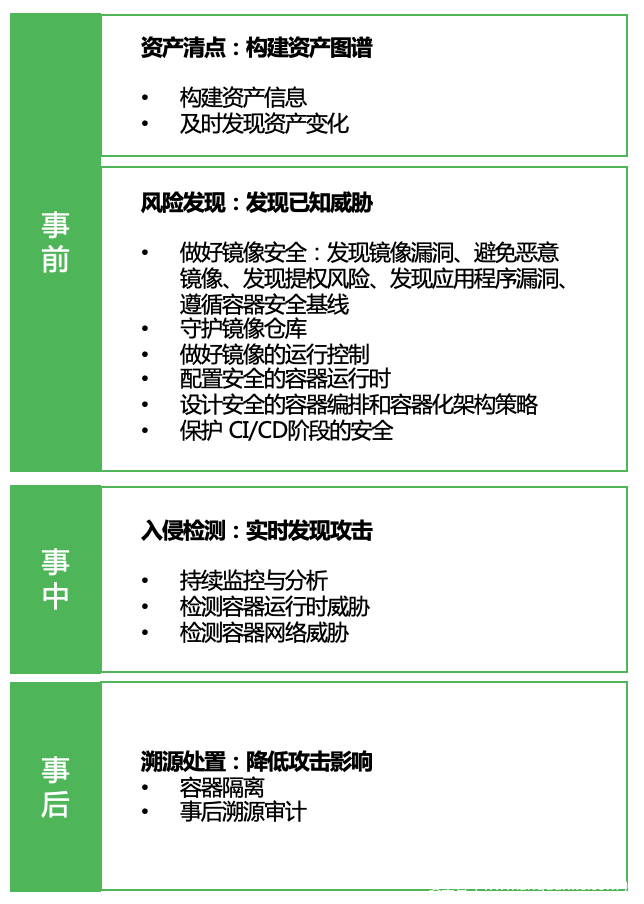 基于Gartner CNAPP的模型,容器安全需提供全生命周期的安全防护,覆盖构建、分发、运行不同的阶段。