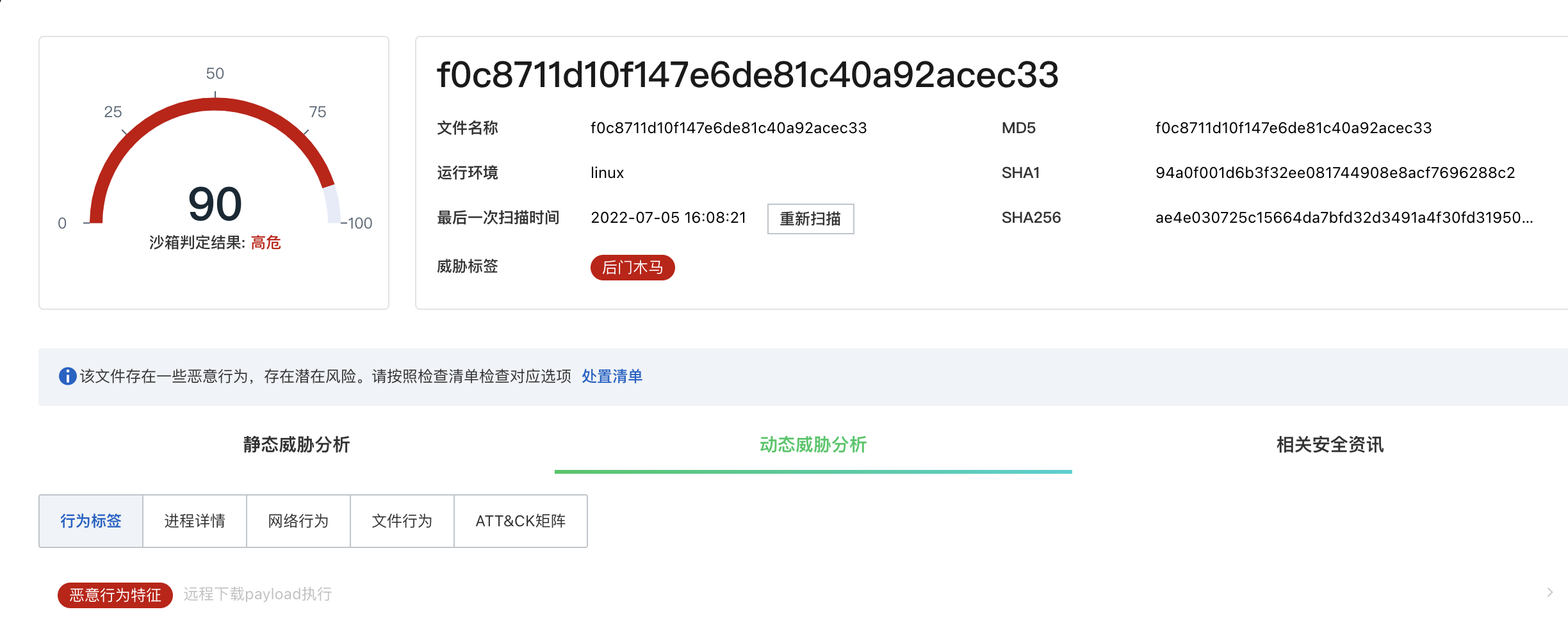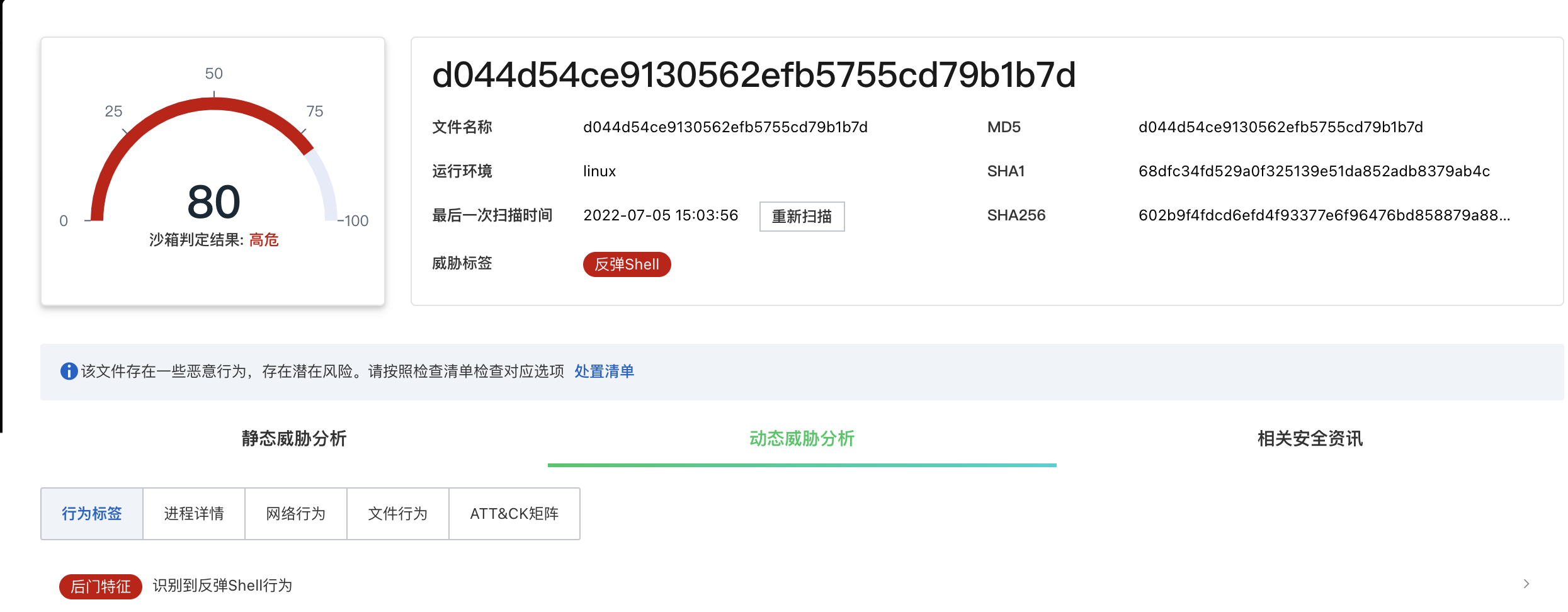 阿里云沙箱能够精准检测该恶意行为