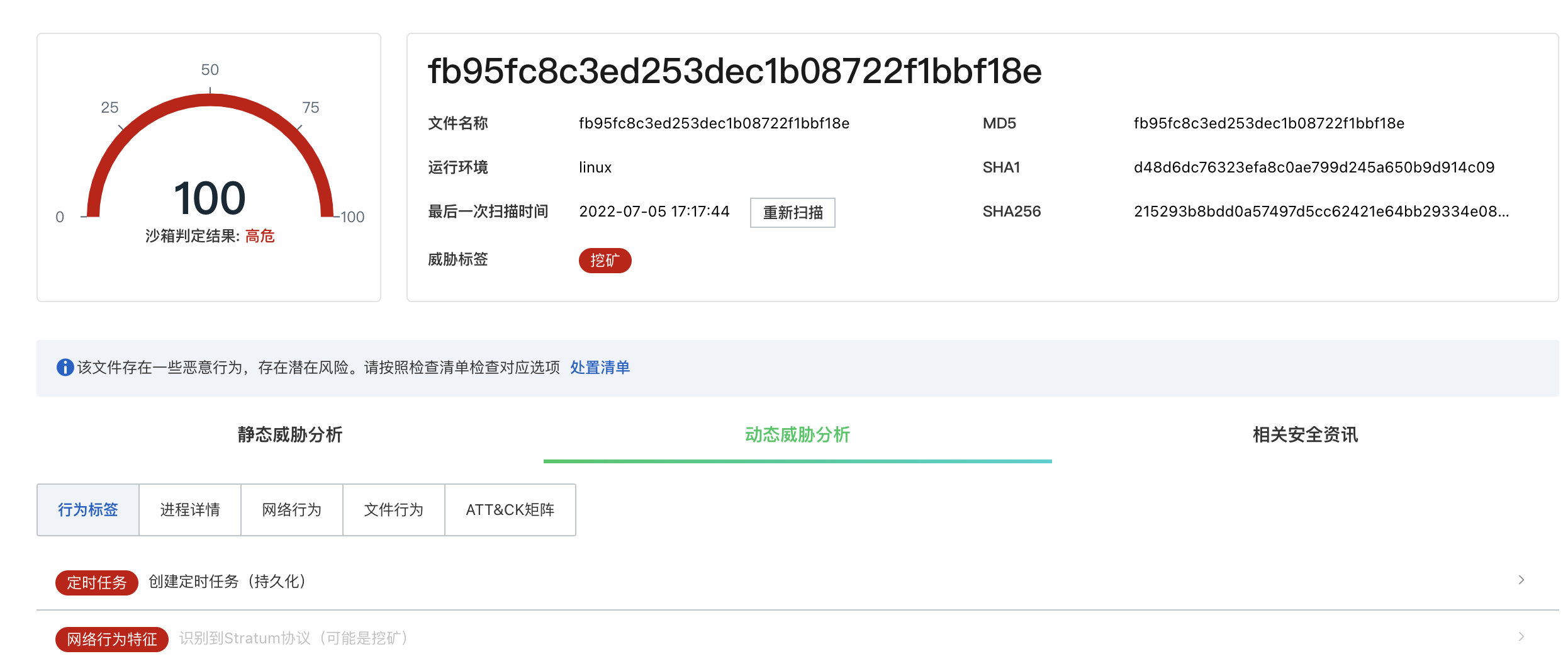 阿里云沙箱支持检测挖矿常用的stratum协议、识别常见挖矿家族行为,发现新挖矿样本