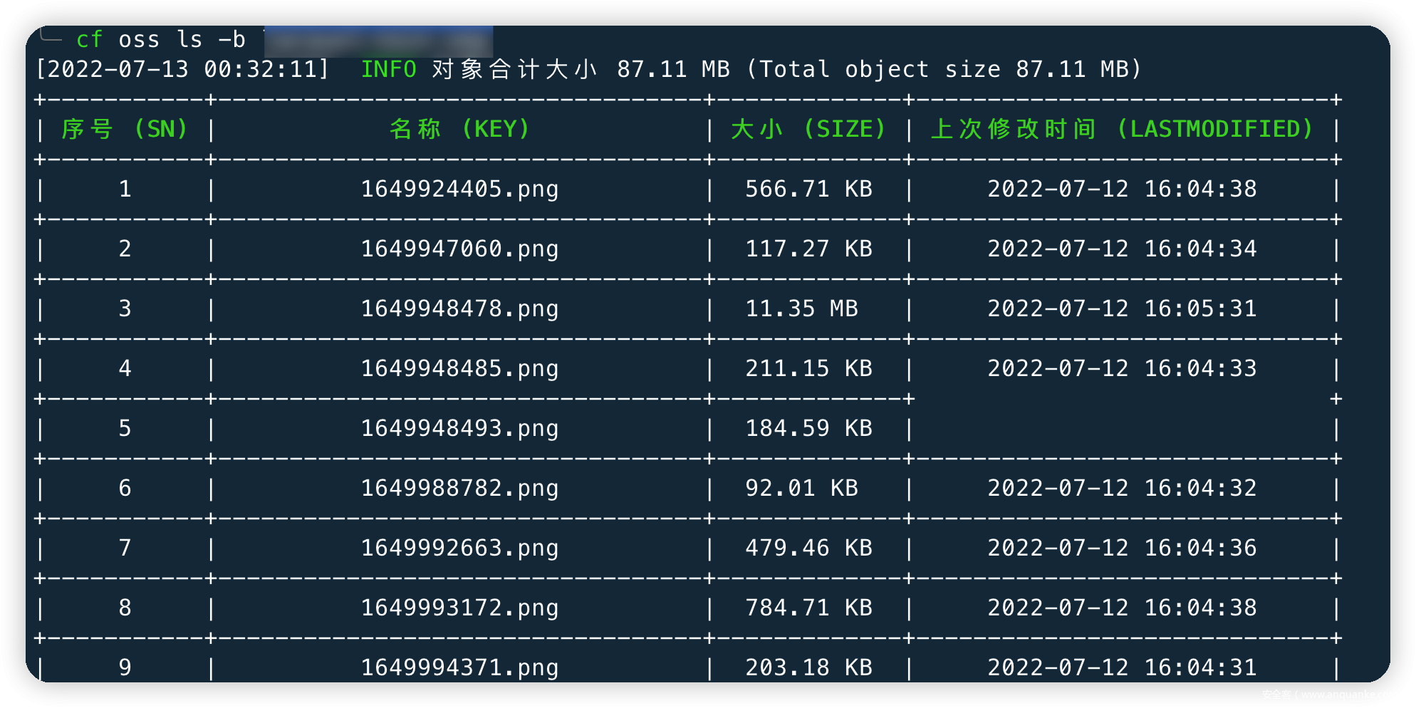 利用 CF 下载文件,如果想下载全部对象,则不指定 -k参数即可。