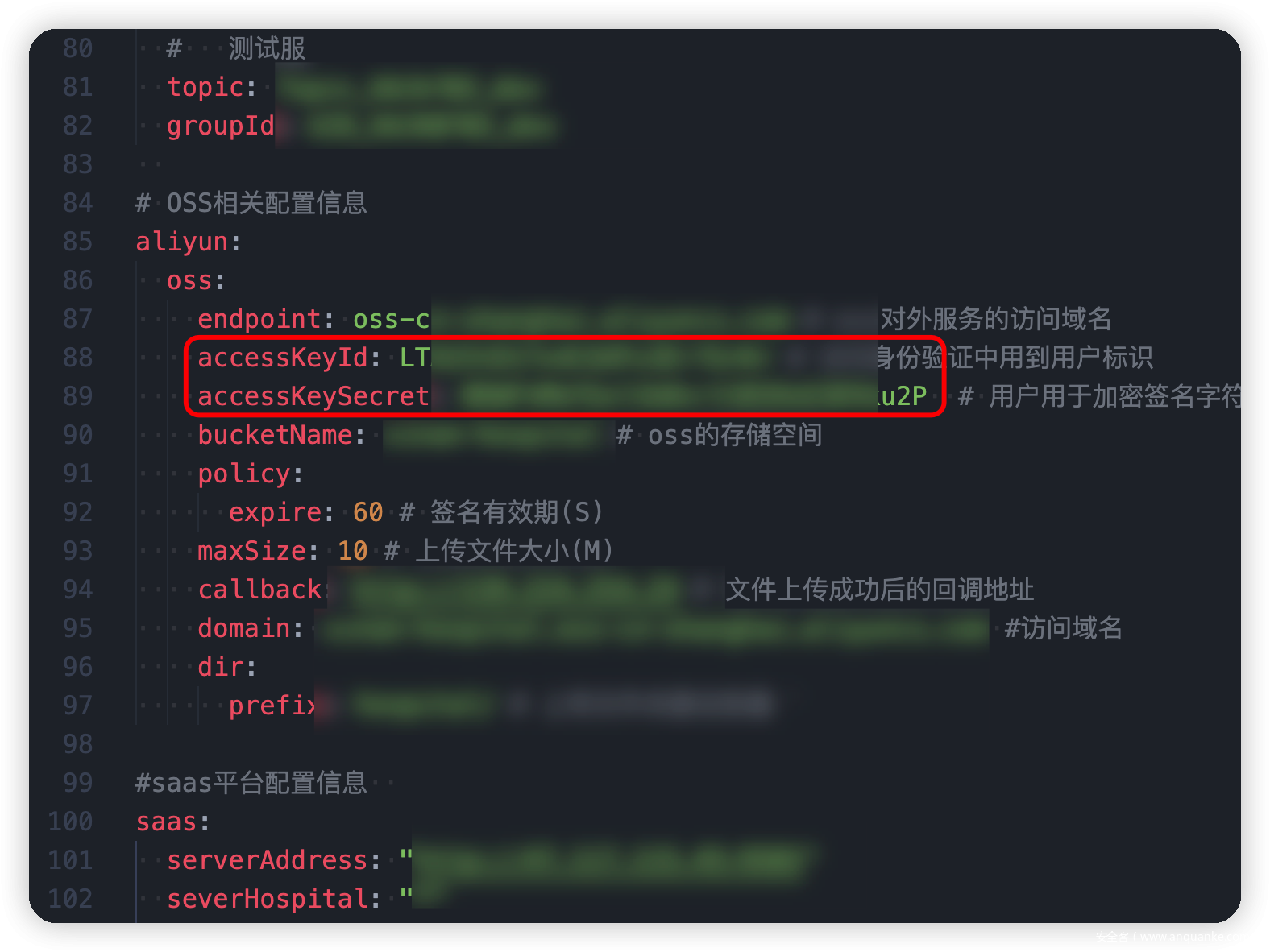 查看这个配置文件,发现在配置文件里写的是「OSS 相关配置信息」