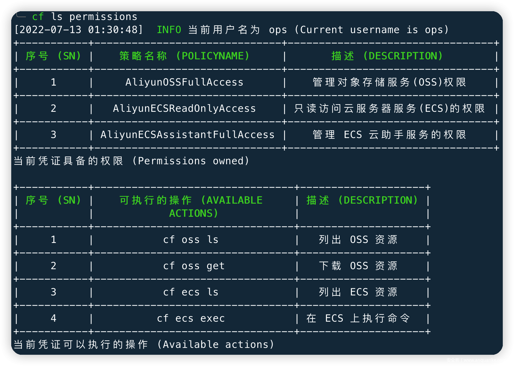 当我们拿到临时访问凭证后,首先要做的就是得知道这个凭证具备哪些权限。
