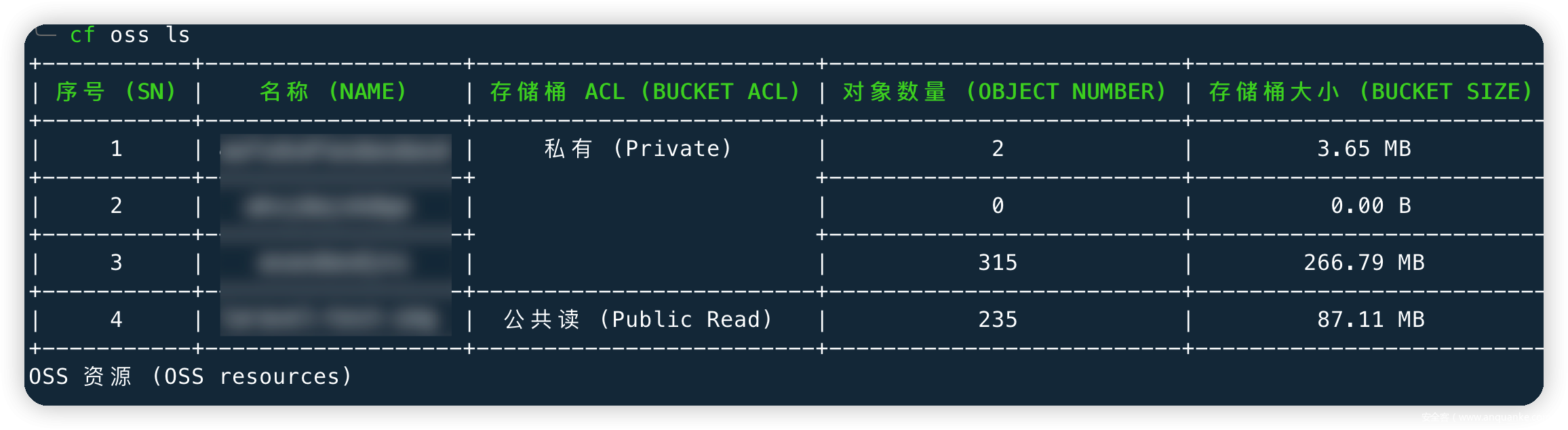 可以看到在该凭证下有四个存储桶,一个是公开的,三个是私有的。