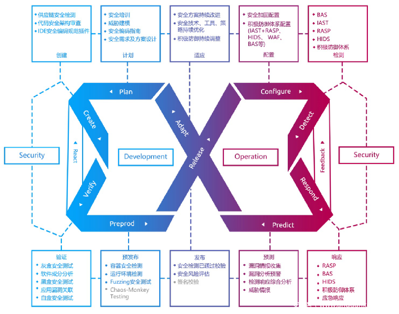 DevSecOps是一种全新的安全理念和模式,于2017年美国RSAC大会上被提出。与SDL相比,相同之处在于两者都要求在每个阶段进行安全活动,不同之处在于DevSecOps更多是提倡将安全工具和技术嵌入DevOps流程,形成自动化的安全检测和保障,实现开发、安全、运营一体化。