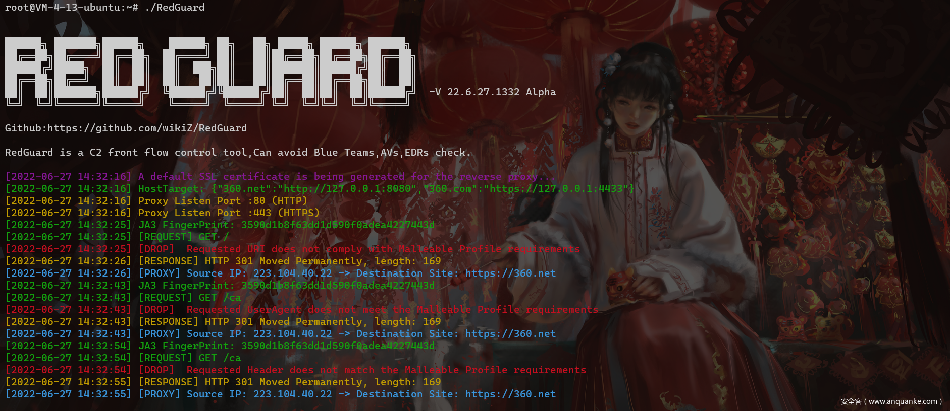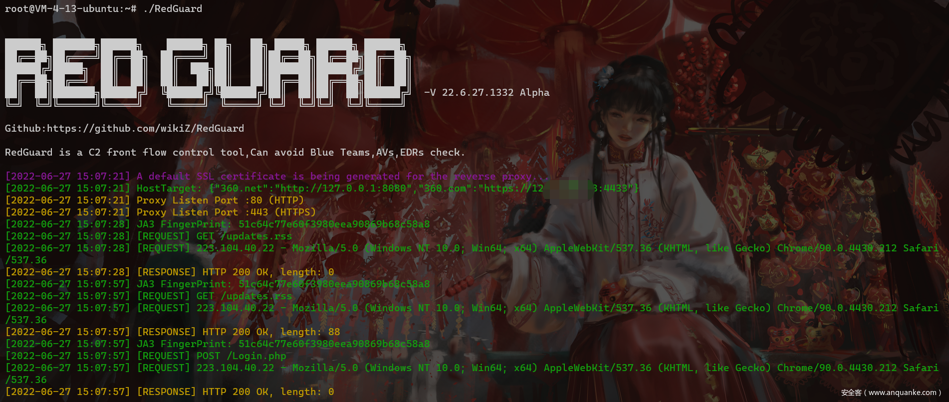 每次启动RedGuard都会更新随机TLS JARM指纹,防止被以此佐证C2设施。
