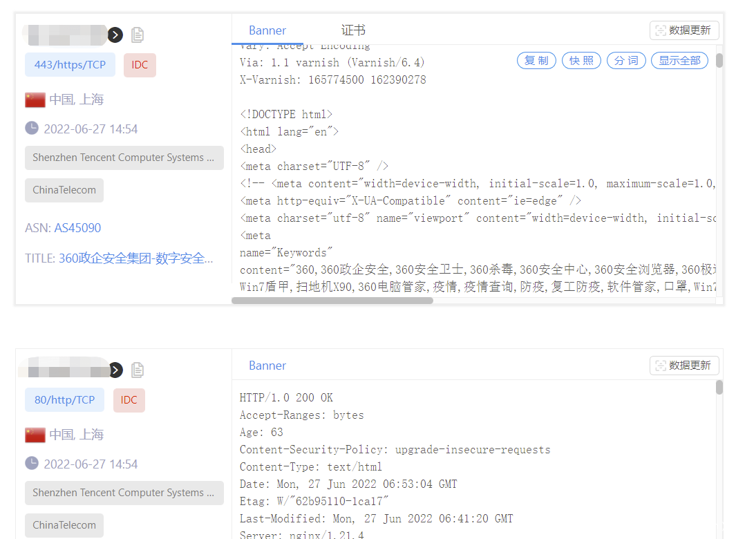 可以看到,没有获取到HTTP响应码,C2前置流量控制对非法请求直接close响应,在网络空间测绘的探测中,DROP的方式可以实现隐藏端口开放情况的作用,具体效果可以看下面的案例分析。