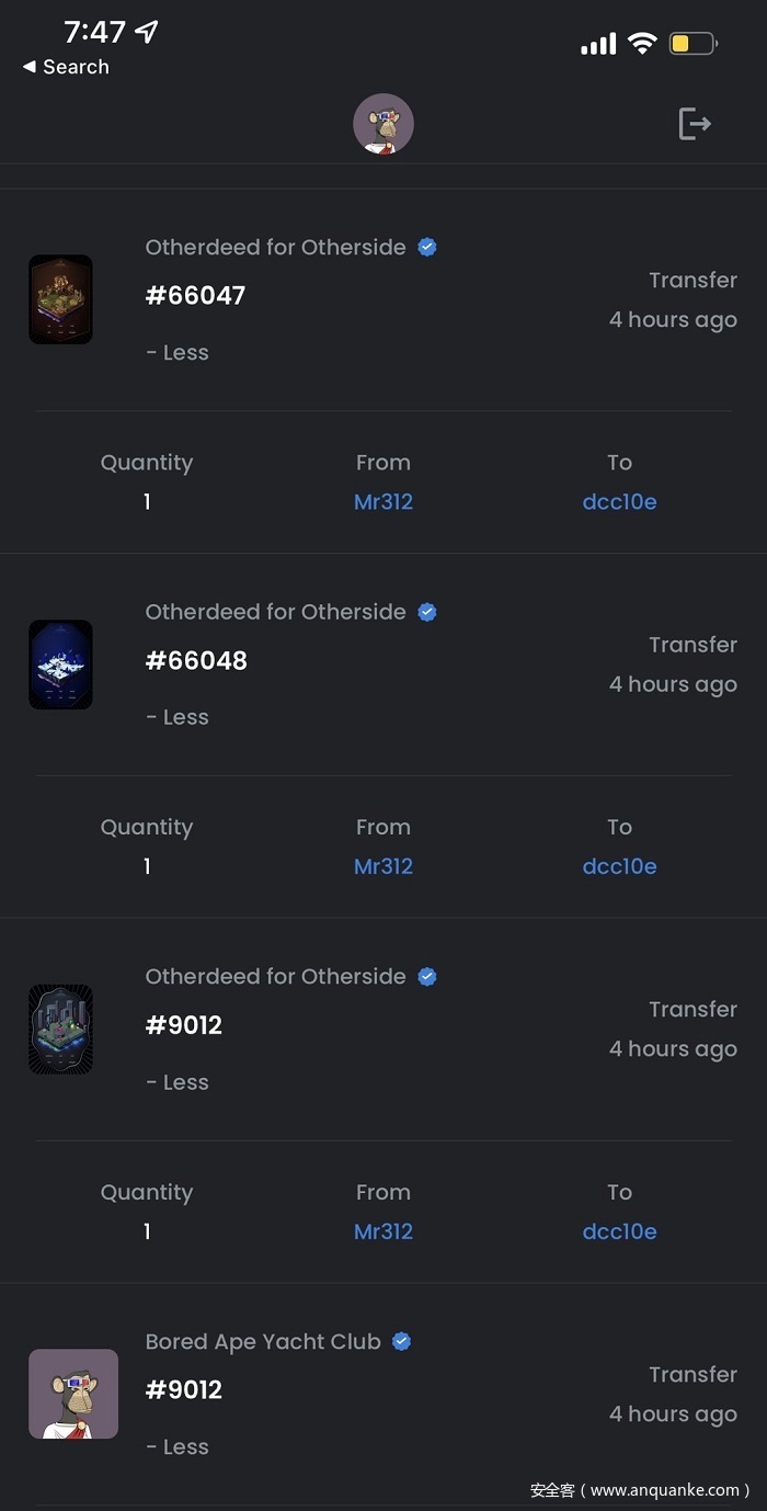 除了 NFT,他的损失还包括 Yuga Labs 即将推出的 BAYC 元宇宙游戏里的一些土地(Otherdeed land NFT)、价值 6.9 万美元的 APE Coin、以及近 4000 美元的 ETH 。