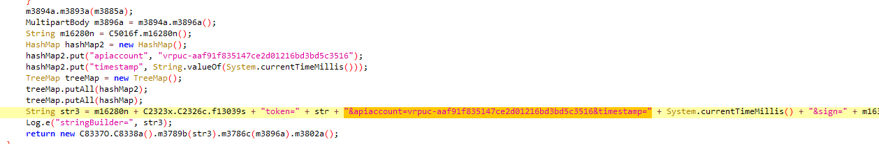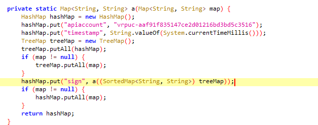 hashMap.put("apiaccount", "vrpuc-aaf91f835147ce2d01216bd3bd5c3516");