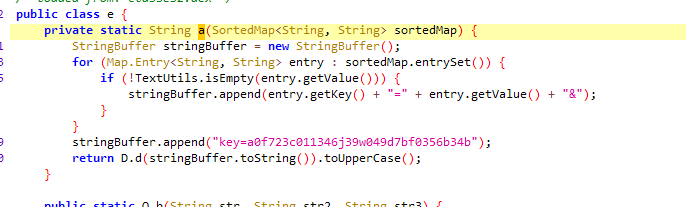 stringBuffer.append("key=a0f723c011346j39w049d7bf0356b34b");