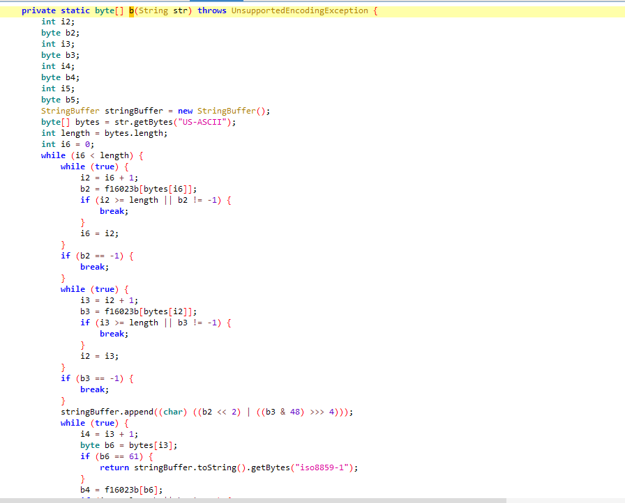 stringBuffer.append((char) (((b3 & 15) << 4) | ((b4 & 60) >>> 2)));