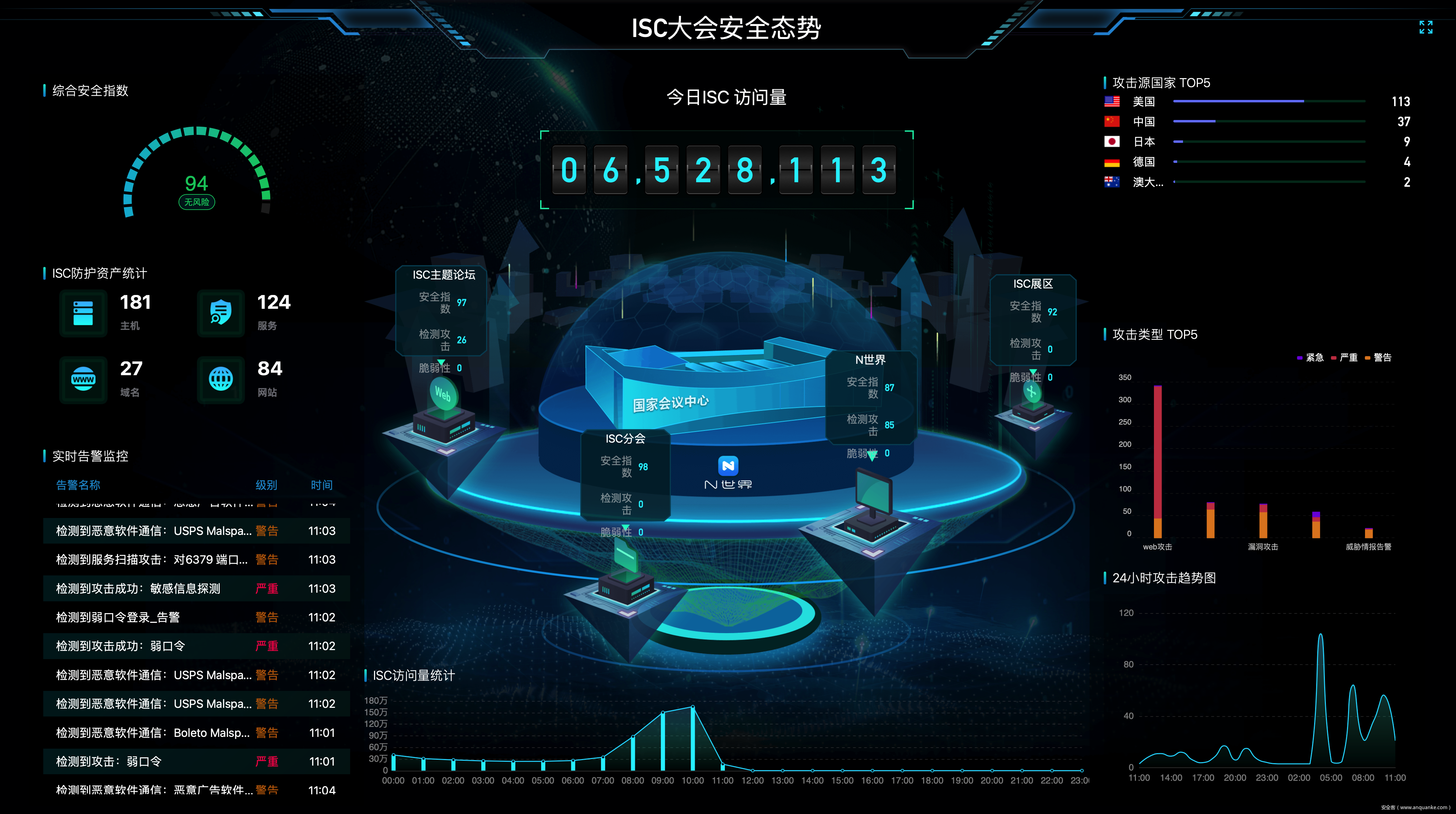 360SOC是由360全球数字安全大脑赋能的“安全基础设施”,协同360顶尖安全专家服务体系,进行安全风险核查、XDR威胁感知能力、安全编排与自动化响应以及安全可视化工作。从首次ISC大会开始,高效保障展会相关基础设施稳定运行,迄今已有8年经验,从未出现过重大风险。