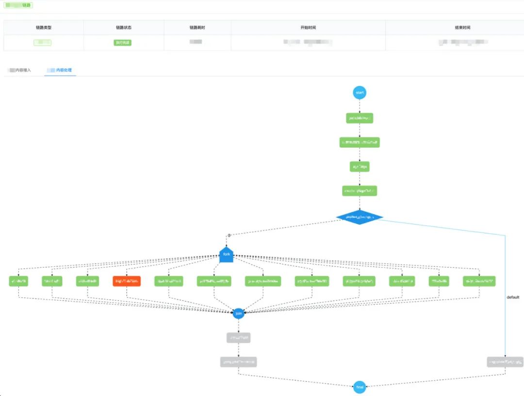 - 节点日志:链路单次执行中,已执行节点的基本信息,包含节点名称、节点状态、节点开始/结束时间等。