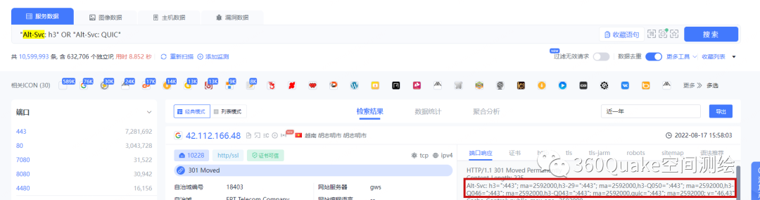 检索语句:”Alt-Svc: h3″ OR “Alt-Svc: QUIC”