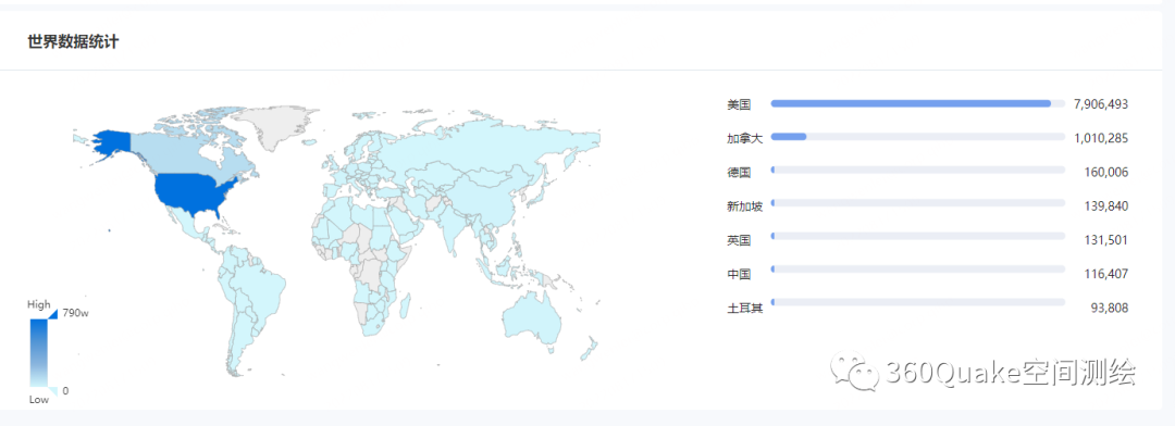 从结果数量上来看,现阶段网络空间对最新的HTTP/3协议还不是十分的青睐。从分布上来看,美国近一年使用HTTP/3协议的资产远超他国。