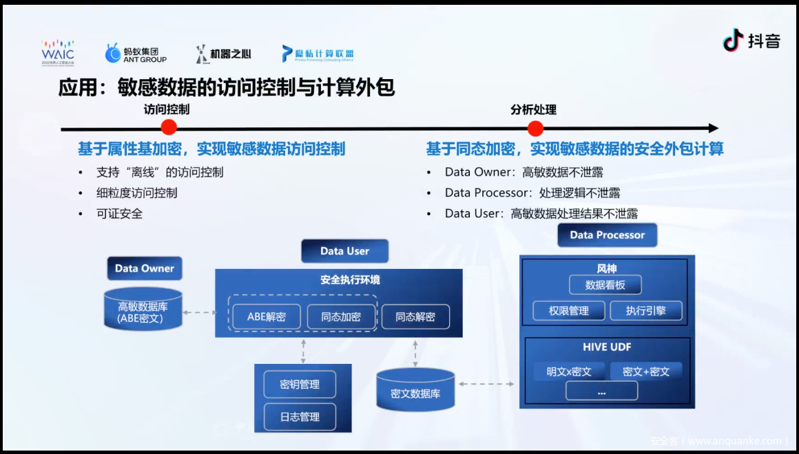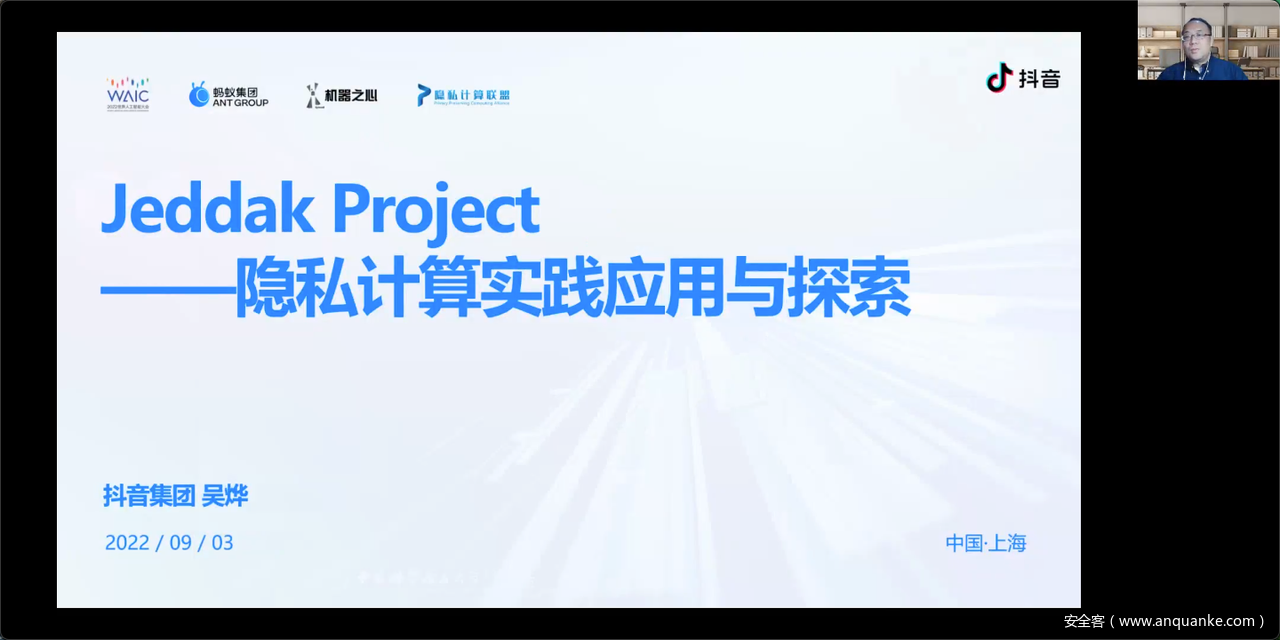 2022世界人工智能大会可信隐私计算高峰论坛上,抖音集团安全研究团队负责人吴烨带来《Jeddak Project-隐私计算实践应用与探索》的议题,该议题聚焦在隐私计算上的能效平衡和应用生态两个维度,就安全性与计算效率的实用化挑战和技术突破,分享了抖音集团的落地经验,希望可以给隐私计算行业提供实践参考。