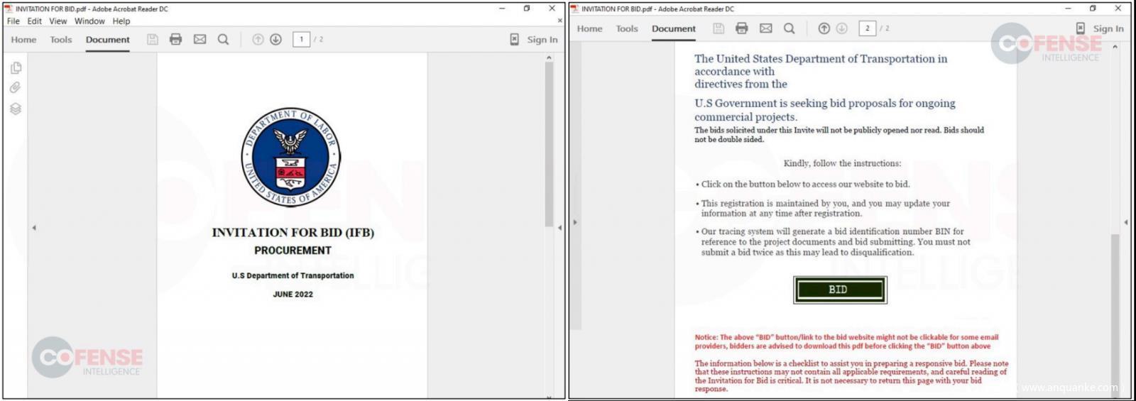 外媒报道称,近期发现大批利用高迷惑性的“诱饵”文件进行网络钓鱼的攻击活动,且主要针对美国政府相关承包商。据悉,这些网络钓鱼电子邮件的内容多会以利润丰厚的政府项目投标需求为诱饵,引导目标点击进入到仿冒的合法联邦机构门户进行后续操作。