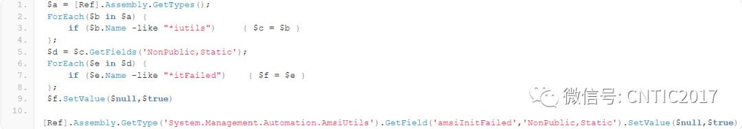 此外,攻击者积极使用PDF文件诱导用户下载并手动执行下一阶段操作,这些是通过VBE 或 JAR 文件执行相似操作直接或通过LNK 文件加载 PoshC2 植入程序。最近,攻击者主要依靠PoshC2植入程序来控制受感染的机器,通常情况下,在初始感染启动PowerShell从名为paste.c-net.org的类Pastebin的服务或专门的C&C服务器下载代码后,它用PowerShell PoshC2植入程序进行响应,通常由三个采用字节编码的块组成(都是PoshC2的标准模块),被执行的前两个PowerShell代码块包含两种非常相似的AMSI绕过技术。![]()