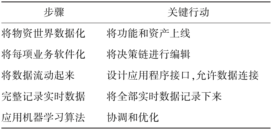 《智能战略》[4]将自动化决策分为了五个步骤(见表1):一是将物资世界数据化,这是数据资产化的起步环节;二是将每项业务软件化,这是数据高效流动的基础;三是将数据流动起来,在自动化办公和业务开展时将数据跟随业务流动起来;四是完整记录实时数据,将所有的数据作为资产留存起来,作为自动化决策的数据集输入;五是应用机器学习算法,输出包括自动化决策的结果。按照此思路,在利用个人信息进行自动化决策的前提是将人的各类特征和行为数据化,并且算法是自动化的关键特点。