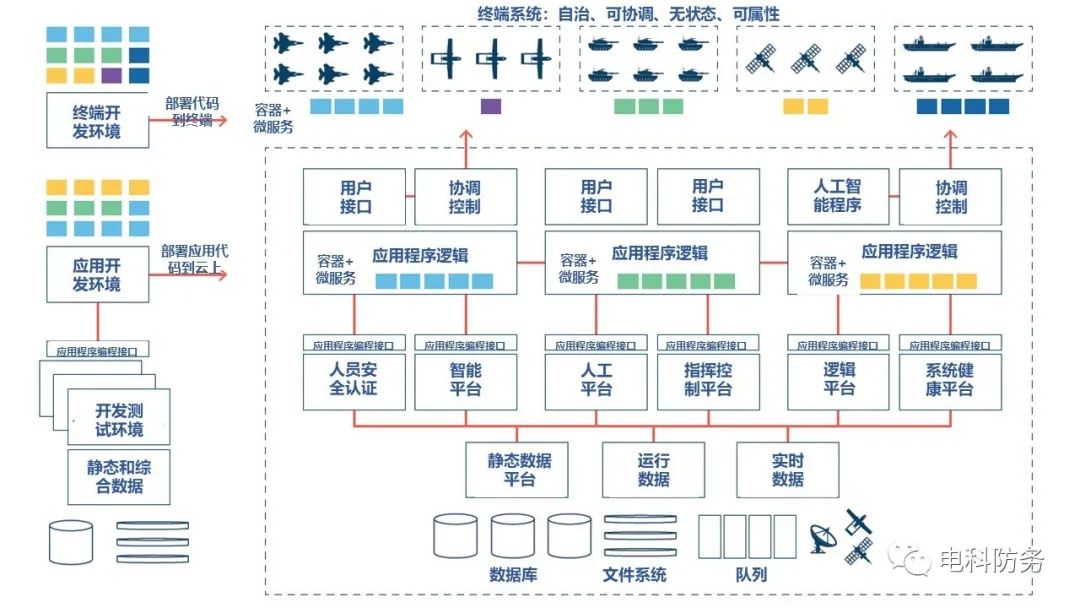 美国防部在设计、开发、运行和维护其所有武器系统和支持硬件时,应该采用上述核心概念。在这种理想化的体系结构中,端到端的软件体系结构连接所有相关的传感器(输入)和武器系统(输出),还将使对所有正确的工作流程(杀伤链)以及预测情报系统、信息传递、目标和火力建模变得更容易,所有这些都将整合到一个建立在几个大型核心平台上的单一架构中。其中最为重要的是,通过自动或人工控制的复杂、大规模、高度可用的软件将一切集成,同时将开发环境和部署环境整合以便更快地进行代码开发、部署和维护。
