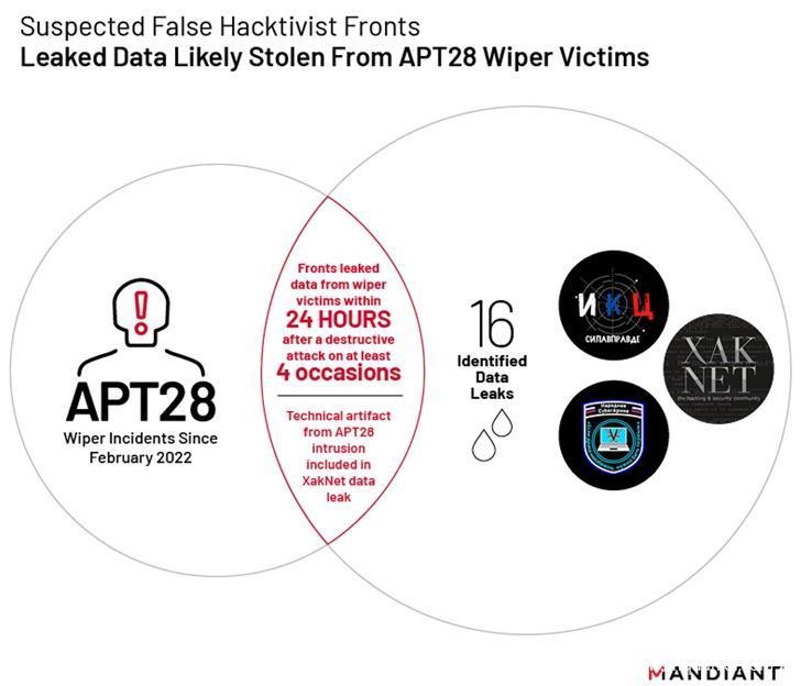在过去几个月里,谷歌的Mandiant网络安全小组观察到支持俄罗斯的黑客组织(表面上由爱国的公民黑客组成)与俄罗斯军事情报机构(简称GRU)的网络入侵活动之间存在明显的协作。Mandiant称,在四起网络攻击事件中观察到了与GRU有关的黑客活动,在这些活动中,恶意Wiper软件被安装到了一个受害者的网络上。