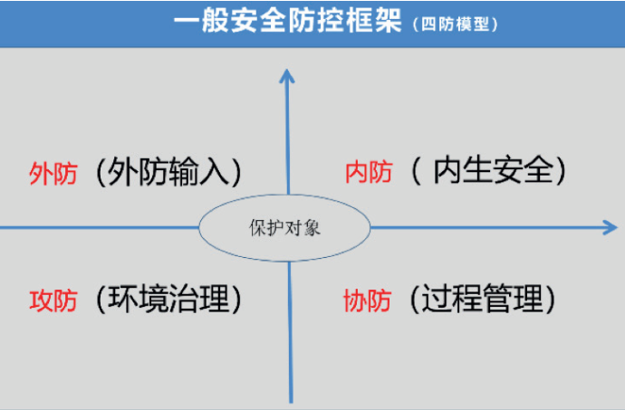 在这次新冠肺炎疫情防控中,我国总结出很多好的经验和方法,所采取的主要措施一是“内防”,打疫苗,提高人体免疫力;二是“外防”,采取戴口罩、隔离疫情、减少聚集、封闭园区、防范外部输入等隔离措施;三是采用“攻防”措施,对病毒区域进行消杀;四是采取“协防”措施,联防联控,扫行程码、健康码,大数据分析人员流动情况。这些措施组合起来使用,对打赢疫情防控保卫战发挥了重要作用。这种“四防模型”是否带有普遍性规律?网络安全防护从中也可以借鉴。关键信息基础设施面临互联网的、技术的、社工的、人为的和故障等各种各样的威胁,系统和设施存在多种脆弱性和漏洞,网络安全问题复杂多样。因此,关键基础设施的保护必须体系化防控。以往专家、学者参考国外资料,提出许多信息安全保护框架,有的在技术标准中加以规范。借鉴疫情防控的“四防”,关键信息基础设施保护也可以采取“四防”模型,如下图所示。 ![]()