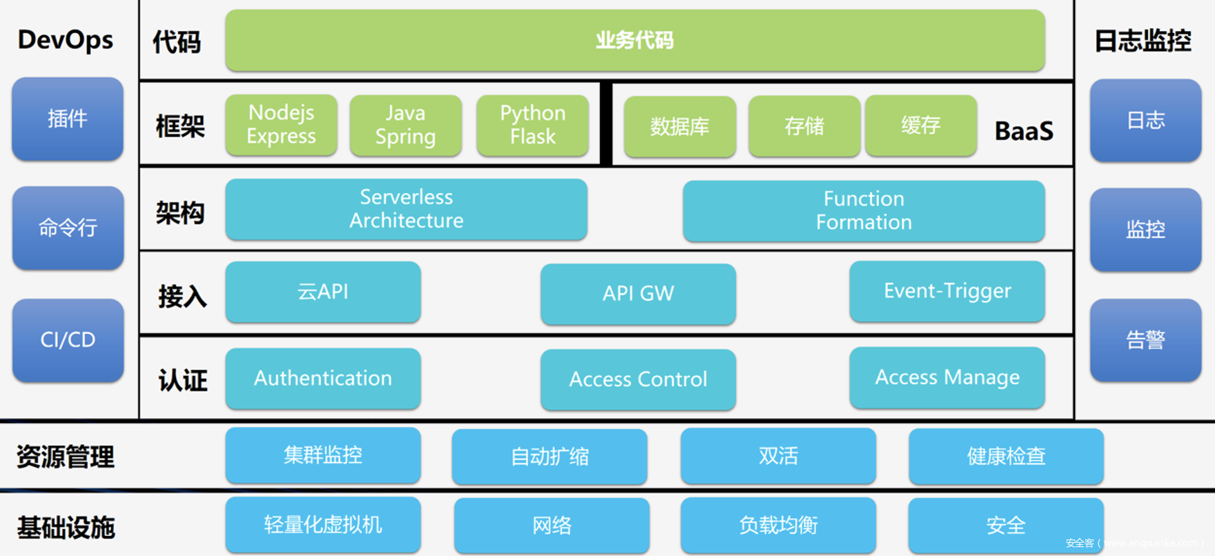 由于函数的生命周期极短,并且随着扩展部署越来越多的函数,函数调用数量不断增加,各函数功能之间存在复杂的关联性,攻击可能从任何一个点发起。因此需要建立完善监控机制,例如使用函数级别的日志分析工具来提高监控能力,及时发现攻击行为。