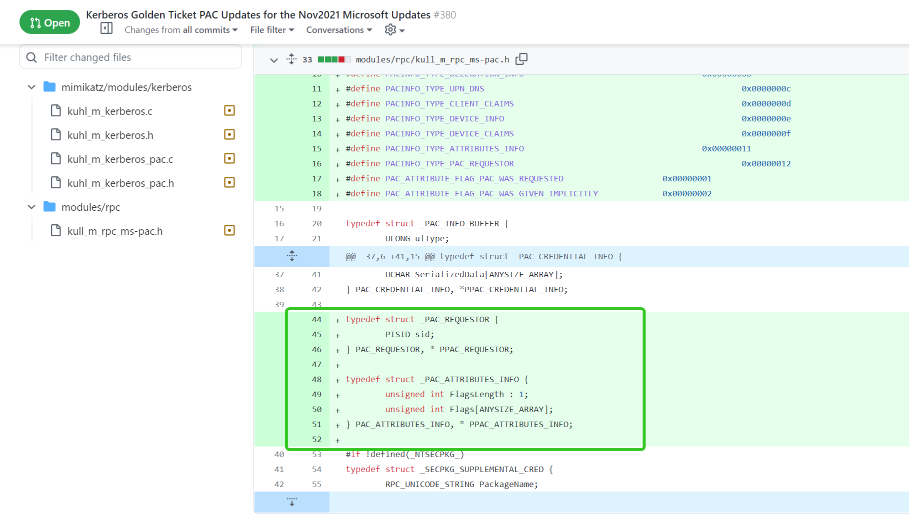 2021年11月9日,微软发布了针对CVE-2021-42287漏洞的修复补丁,跟据微软的文章描述,此次更新后,在PAC中添加了一个新属性PAC_REQUESTOR