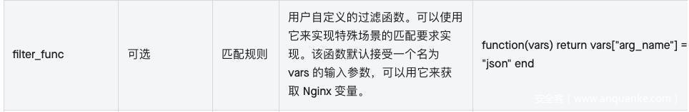 3、注册路由时、携带参数filter_func 传递 lua代码、造成远程代码执行漏洞。