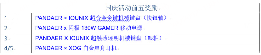 活动期间,排名前五的白帽将获得以下奖品:机械键盘、移动电源、数据线、耳机、散热游戏背夹等